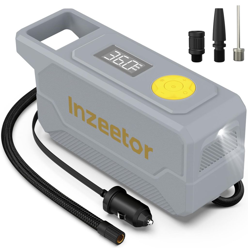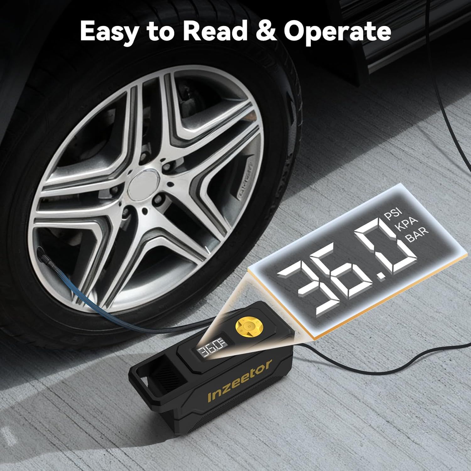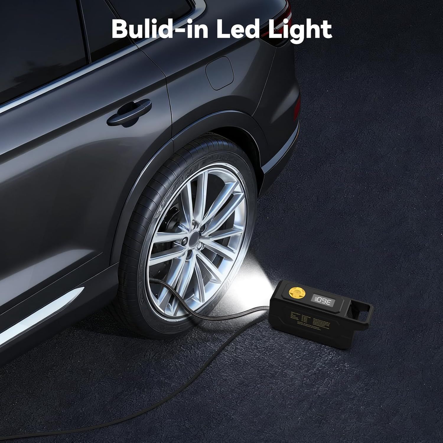 150 PSI Tire Inflator Portable Air Compressor, 12V DC Auto Shutoff Air Pump with Digital Pressure Gauge and Emergency LED Light for Car Tires, Bicycle & Balloons, Black