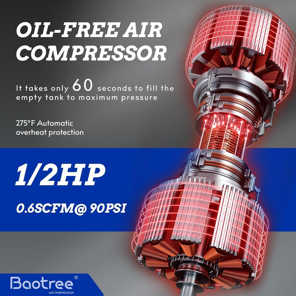 4 Gallon Portable Air Compressor, Max 110PSI Oil Free Air Compressor Tank, 0.5HP Motor 0.6SCFM@90 PSI,1.0SCFM@40PSl Garage Air Compressors for Car Repair, Spray Painting, Woodwork Nailing
