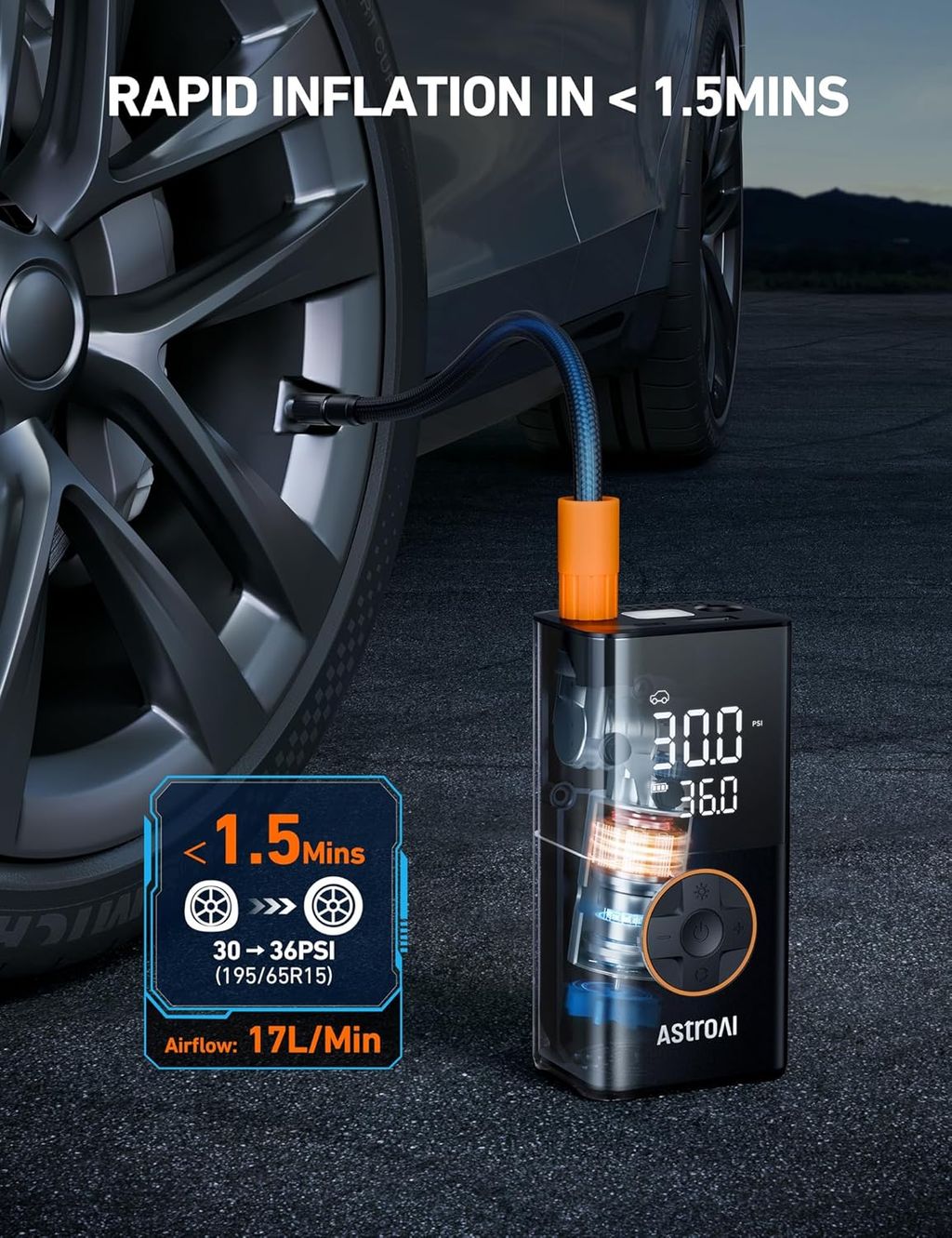 AstroAI L7 Tire Inflator Portable Air Compressor Cordless Mini Bike Pump with Digital Dual Values Display, 150 PSI Car Tires Air Pump with LED Lights&Pressure Gauge for Auto, Motorcycles, Bikes, Balls