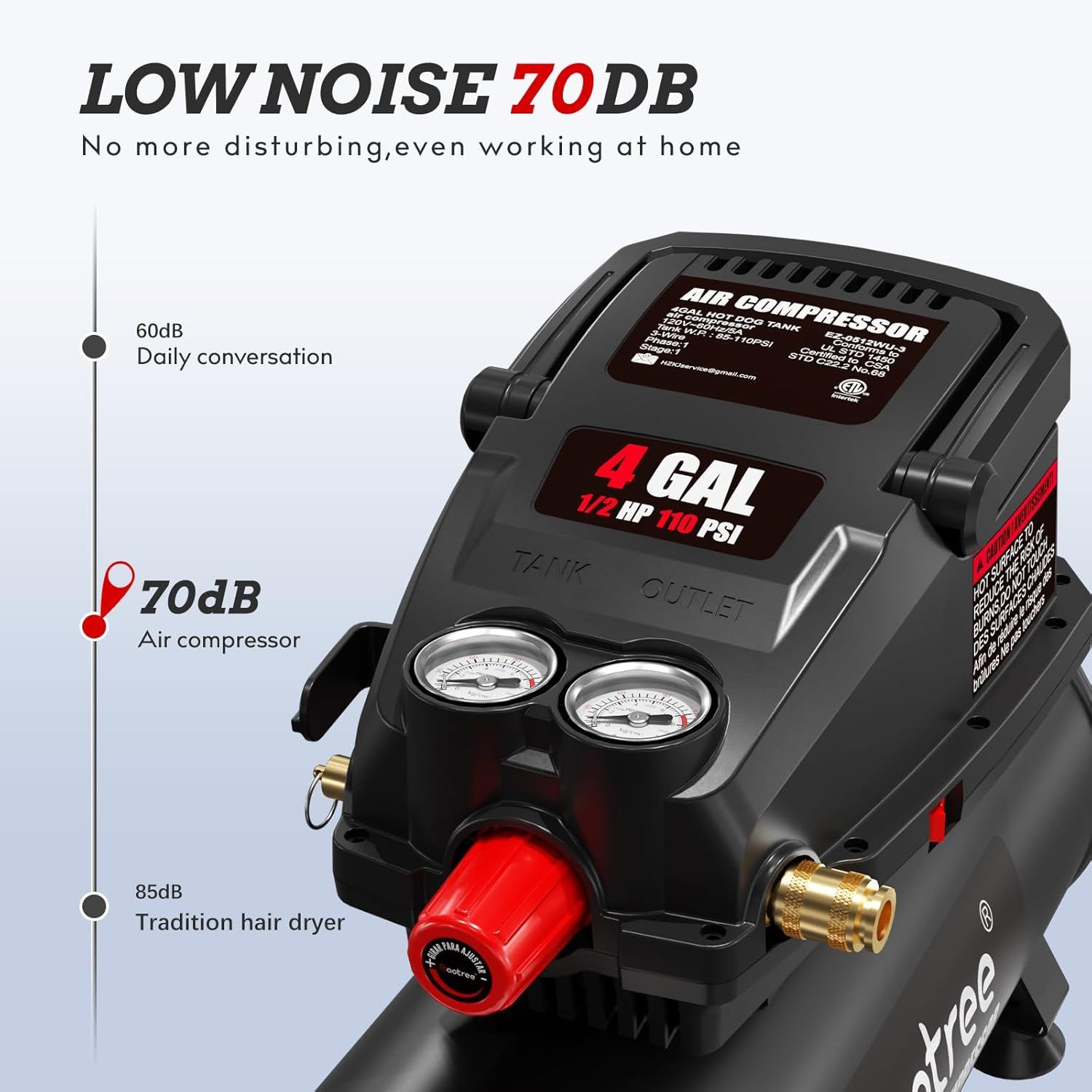 Portable Air Compressor, 4 Gallon Max 110PSI Oil Free Air Compressor Tank, 0.5HP Motor 0.6SCFM@90 PSI,1.0SCFM@40PSl Garage Air Compressors for Car Repair, Spray Painting, Woodwork Nailing
