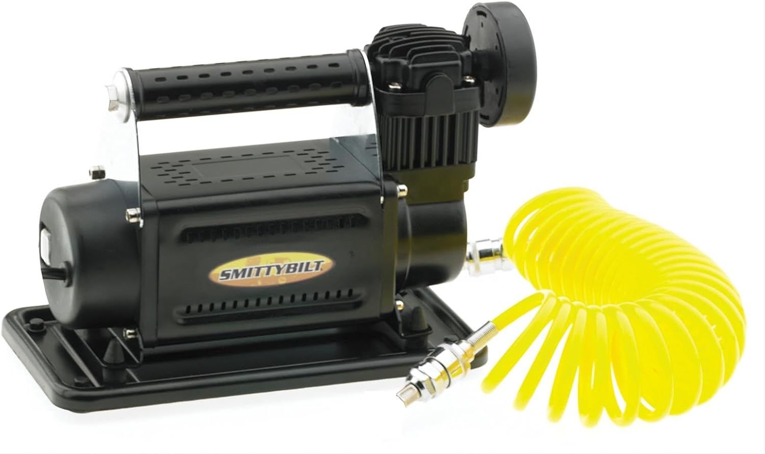 For the added convenience of being able to air-up or air-down your tires to accommodate various types of terrain, a Smittybilt Air Compressor is the most powerful compression unit in its class with a 1/3 horsepower oil-less direct drive motor and a 30 amp inline fuse.
