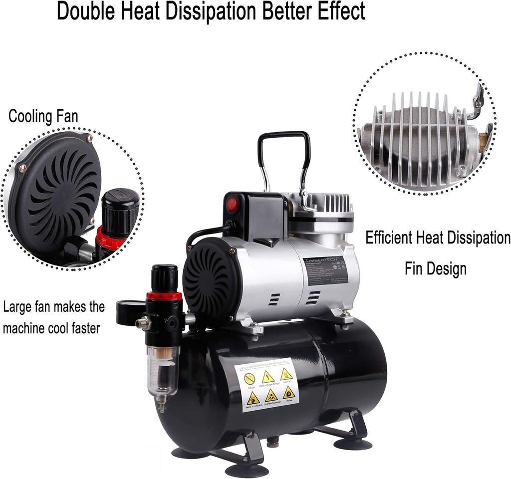 Timbertech Upgraded Airbrush Single-Piston Oil-free Mini Compressor ABPST08 with Cooling Fan, 3L Tank, Regulator, Moisture trap for Hobby, Body Tattoo, Model Painting, Automotive Graphic, Make-up