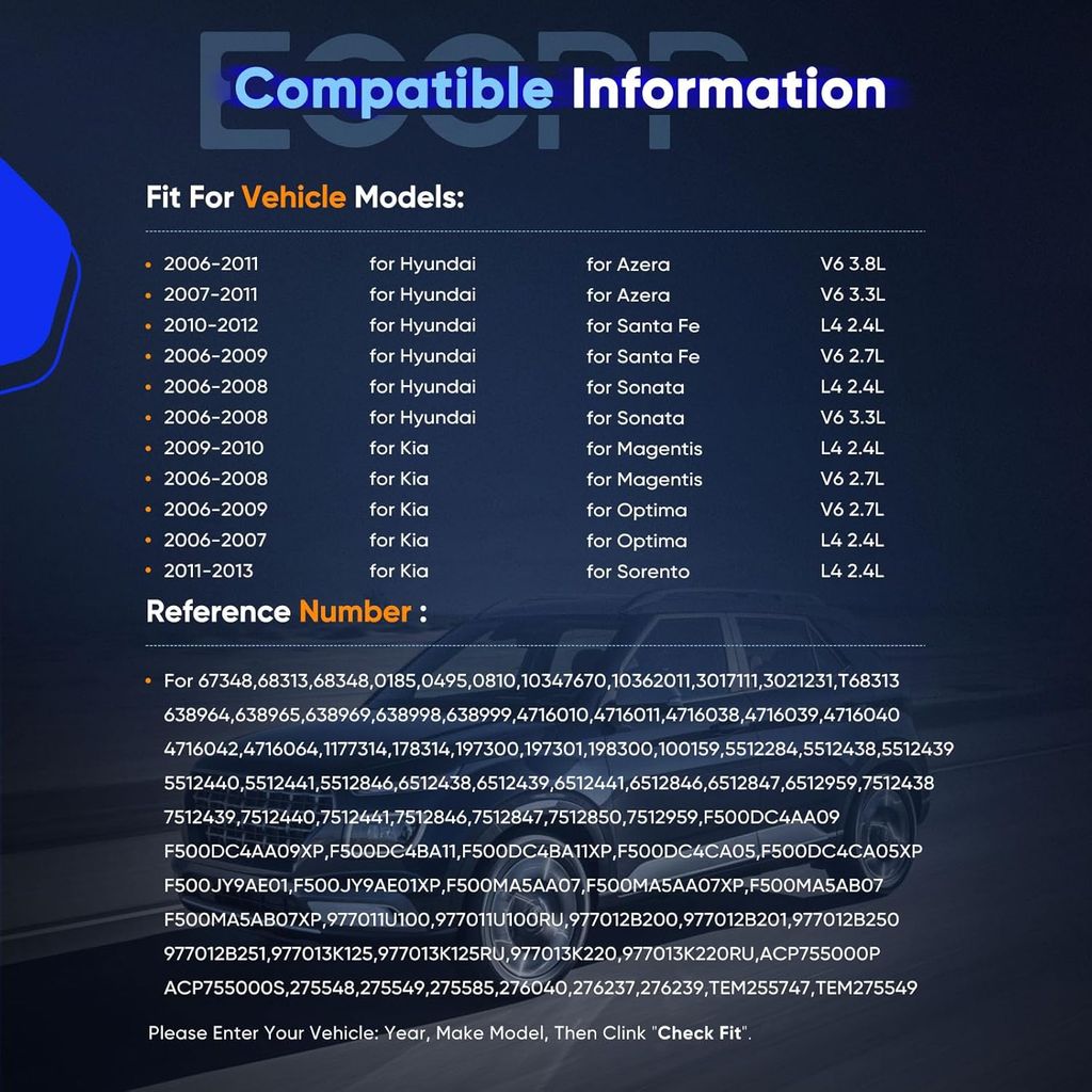 ECCPP AC Compressor 2006-2012 Fit for Hyundai Azera Santa Fe Sonata for Kia Magentis Optima Sorento AC Compressor with Clutch
