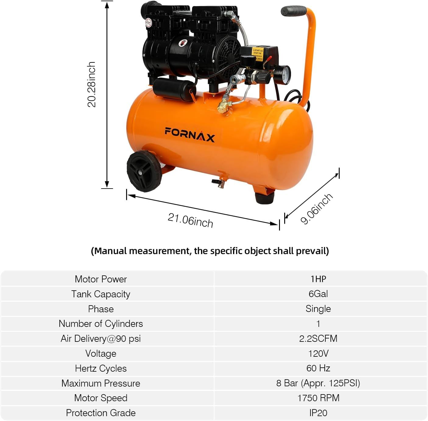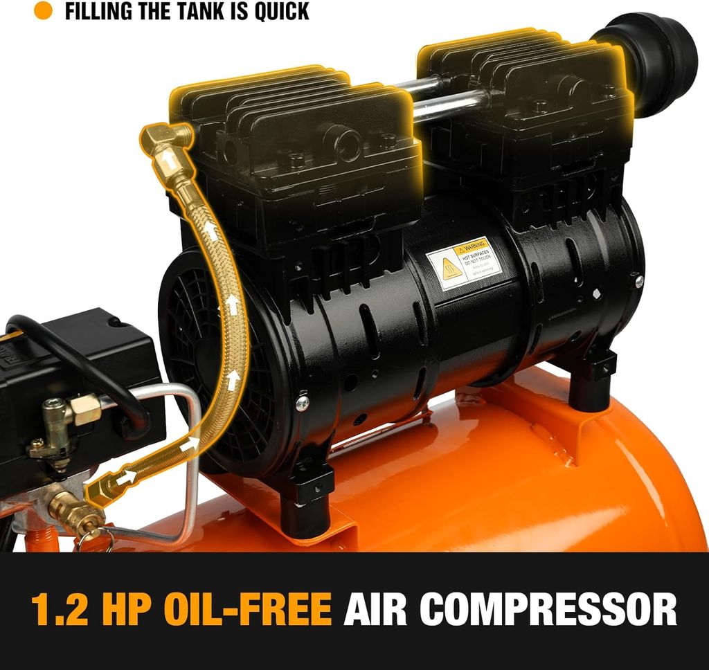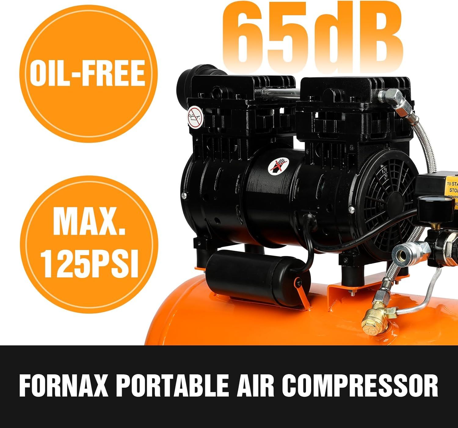 FORNAX Portable Air Compressor 6.4 Gallon, 1 HP 2.2CFM@ 90 PSI Oil Free Air Compressor, Max Pressure 125 PSI, 65 dB Quiet Compressor for Auto Repair, Tire Inflation, Spray Painting, Woodwork Nailing