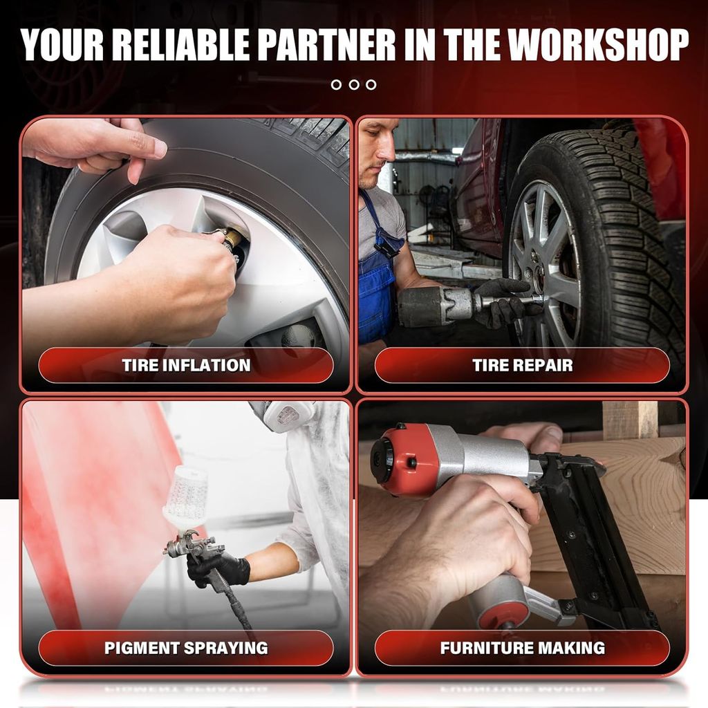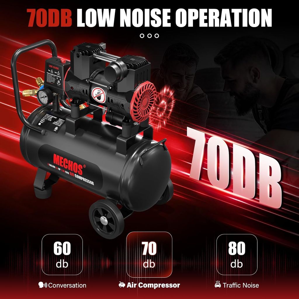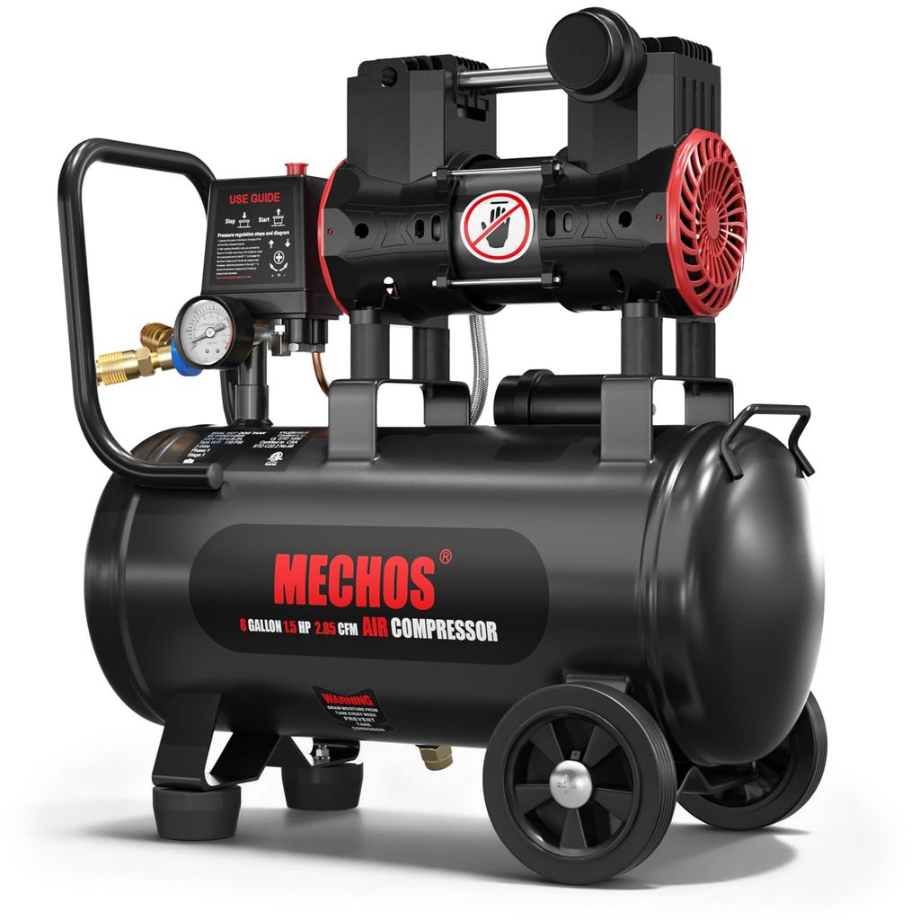 Portable Air Compressor with 8 Gallon Steel Tank, 1.5 HP 2.85 CFM @ 90 PSI, 116 Max PSI Oil-Free Air Compressor for Garage, Home Use, Tire Inflation, Nail Gun, DIY Projects,110V