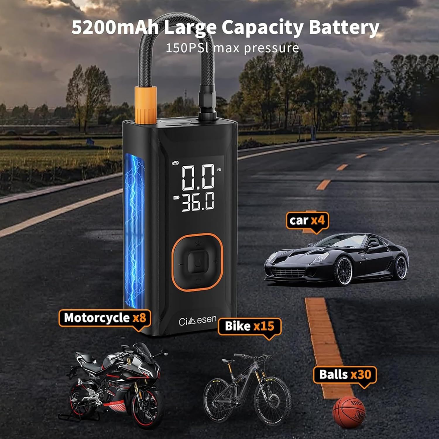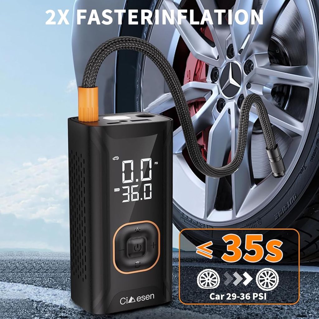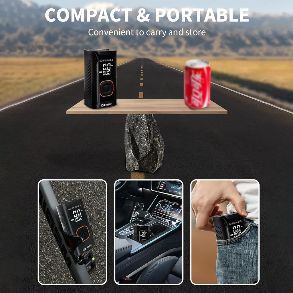 Tire Inflator Portable Air Compressor, 150PSI Portable Air Compressor with Accurate Pressure Gauge E-Bike Inflation Cordless Air Pump for Bike Pump Car Motorcycle Ball