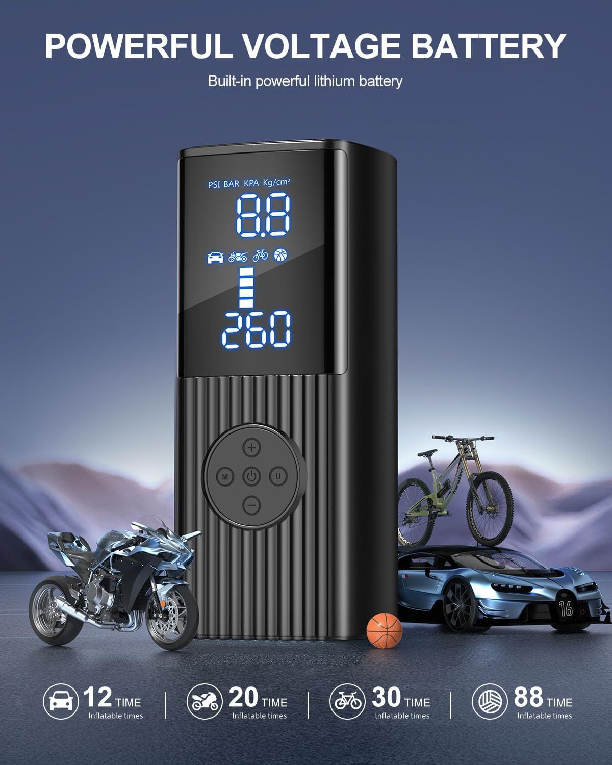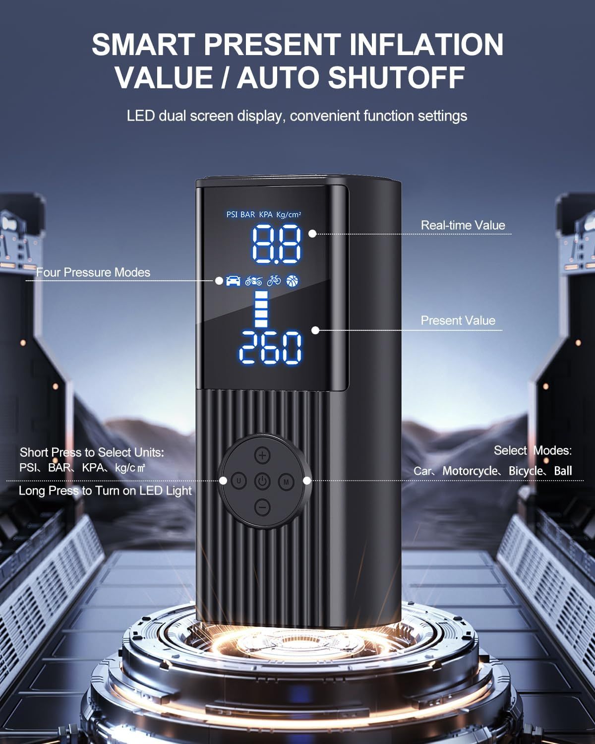 Tire Inflator Portable Air Compressor, 180PSI Cordless Air Pump with Digital Gauge, LED Light and Auto Shut-Off Function, 3X Faster Air Compressor for Car, Motorcycle, Bicycle, Ball