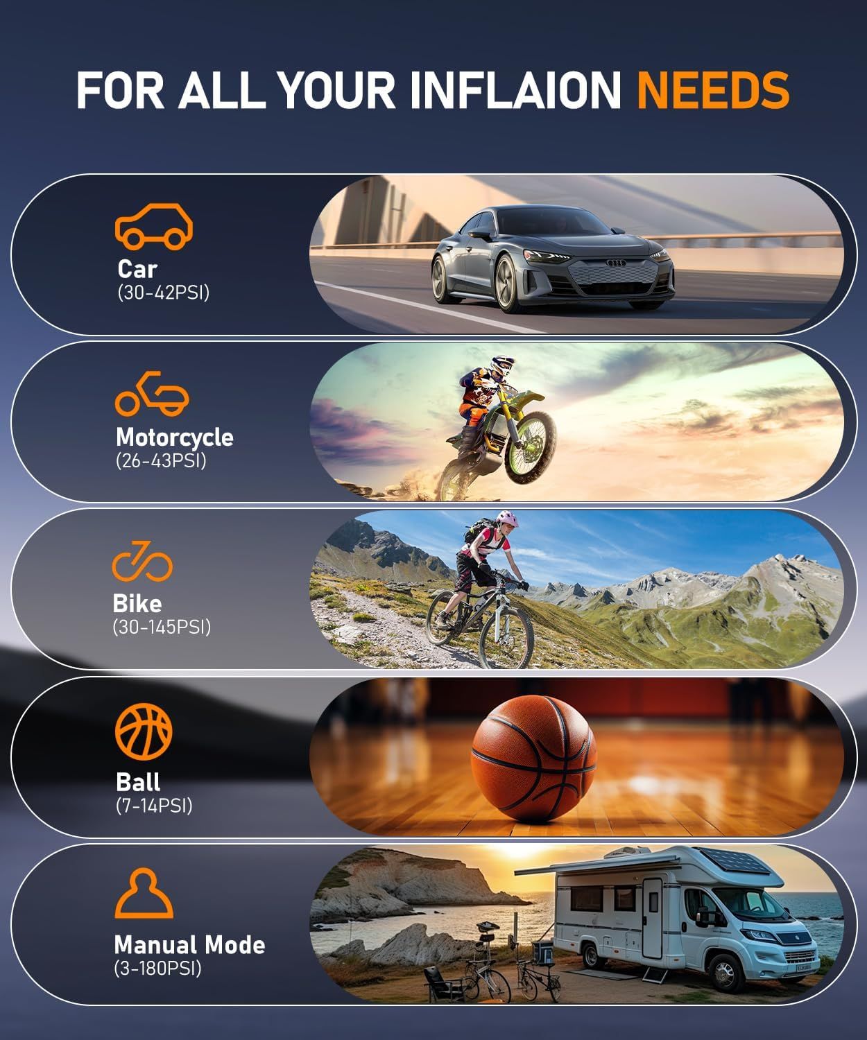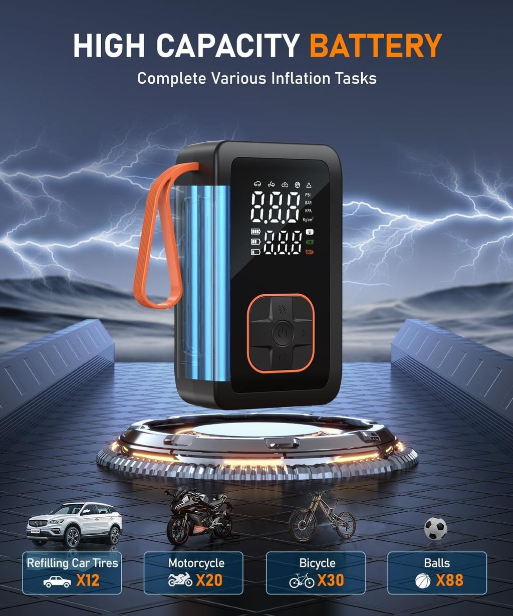 Tire Inflator Portable Air Compressor, 3X Faster Cordless Air Pump for Car Tires with LED Light, 150PSI Air Pump with Cigarette Lighter Plug for Car, Motorcycle, Bicycle, Ball(Black)
